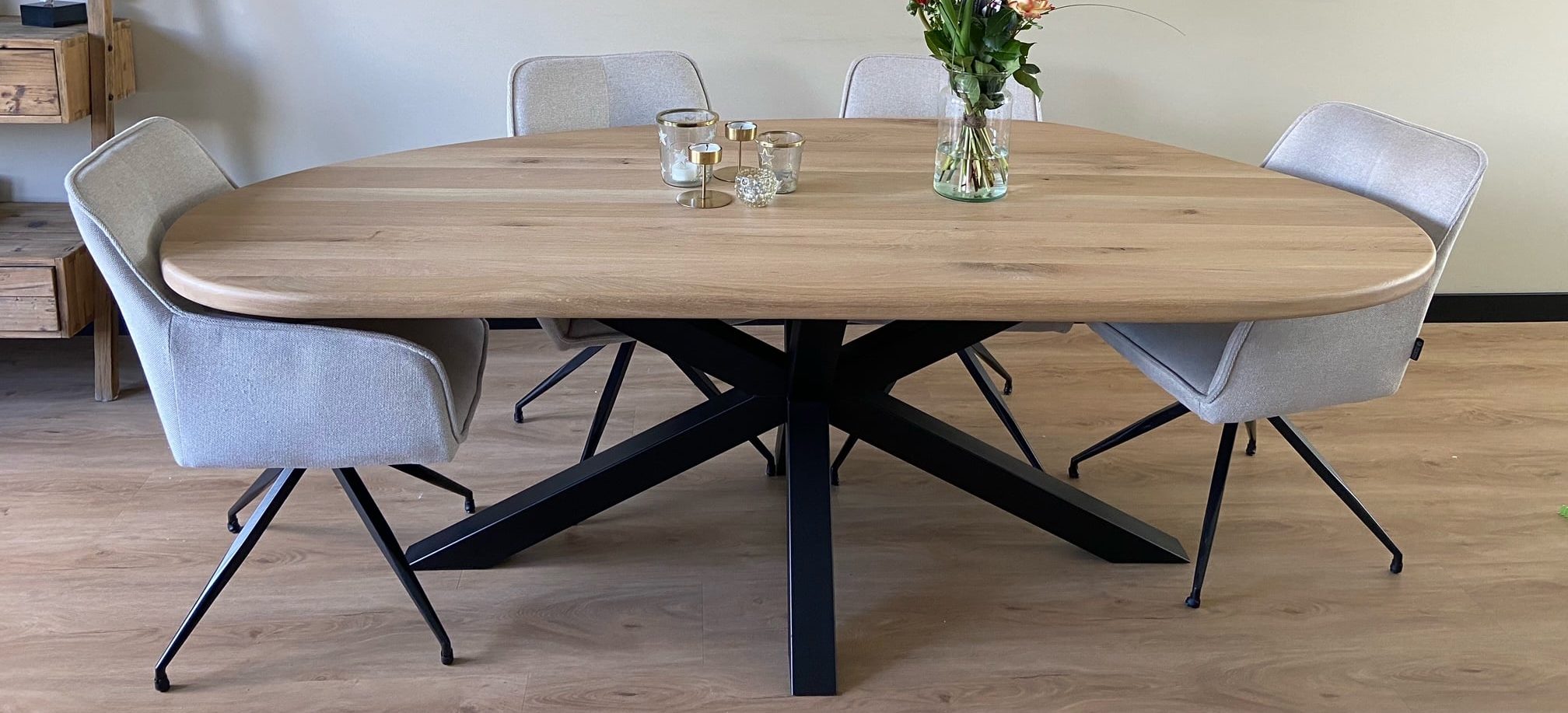In onze werkplaats werken wij onder andere aan onze prachtige tafels, kasten en specials. Benieuwd hoe onze werkplaats eruit ziet? Bekijk hieronder enkele beelden en video’s van onze werkplaats!
